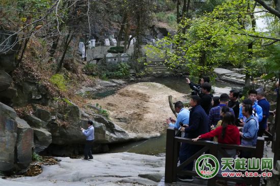 選擇天柱山,理由一串。新春,隨著《相約1998》的歌聲,相約悠悠,歲月悠悠。經(jīng)過(guò)三載的齊心協(xié)力的創(chuàng)建,單位終獲桂冠,一場(chǎng)盛大的歡喜之后,隨著而來(lái)就是這是外出獎(jiǎng)勵(lì)。一個(gè)大巴,近50人的團(tuán),大巴車(chē)中不知裝滿(mǎn)了多少欣喜、歡喜甚至驚喜。天柱山的了解,多是碎片化的,偶讀余秋雨的《寂寞天柱山》也是驚鴻一現(xiàn),思緒多在患得患失中飄逸。正如我長(zhǎng)期琢磨的一個(gè)問(wèn)題,如果當(dāng)年李白能久久在潛山尋景,在多些日月在天柱山下靜修,或許那首詩(shī)就是:相看兩不厭,唯有天柱山了,換成這般地贊嘆,必定是游園驚夢(mèng),姹紫嫣紅了,也不必會(huì)有“寂寞天柱山”之感慨了。而恰恰相反的是李白把天柱山當(dāng)“家”了,來(lái)了句:“待吾還丹成,投跡歸此地?!弊屘熘降攘撕脦啄?。