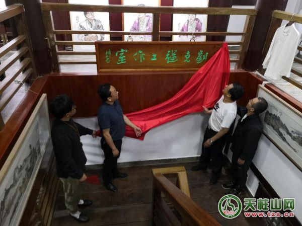 最后,在全體嘉賓的共同見證下,市委常委、天柱山管委會(huì)副主任涂高生、潛山市文聯(lián)主席韓久安、著名畫家劉克強(qiáng)、天柱山書畫院執(zhí)行院長(zhǎng)何承熙共同為“劉克強(qiáng)工作室”揭牌。