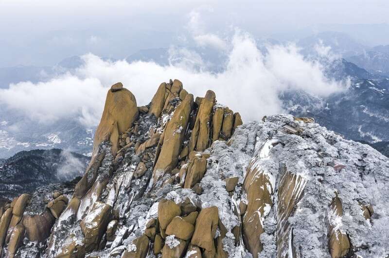 受冷空氣影響,2020年12月14號(hào),安徽潛山天柱山迎來降雪,漫山遍野,銀裝素裹,宛如冰雪夢(mèng)幻世界。
