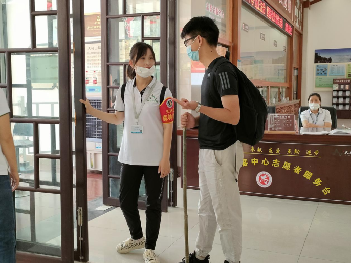 她們說:“這個(gè)國慶很慶幸還參加了景區(qū)舉辦的“同為炎黃子孫?同升一面國旗”愛國主題活動(dòng),親眼看到抗美援朝老爺爺,太感動(dòng)了”“好多游客還不懂得通過手機(jī)app小程序掃碼購票,通過我們的幫助,游客就可以不去窗口取票,能夠快速同行?!薄斑@次我們還向游客發(fā)放問卷,了解游客對天柱山的旅游體驗(yàn)以及對景區(qū)的期待和服務(wù)工作的認(rèn)可度,希望通過這項(xiàng)活動(dòng)切實(shí)提升天柱山的服務(wù)實(shí)力?!?span style="font-family:'楷體' , '楷體_gb2312' , 'simkai'">(夏荷)?